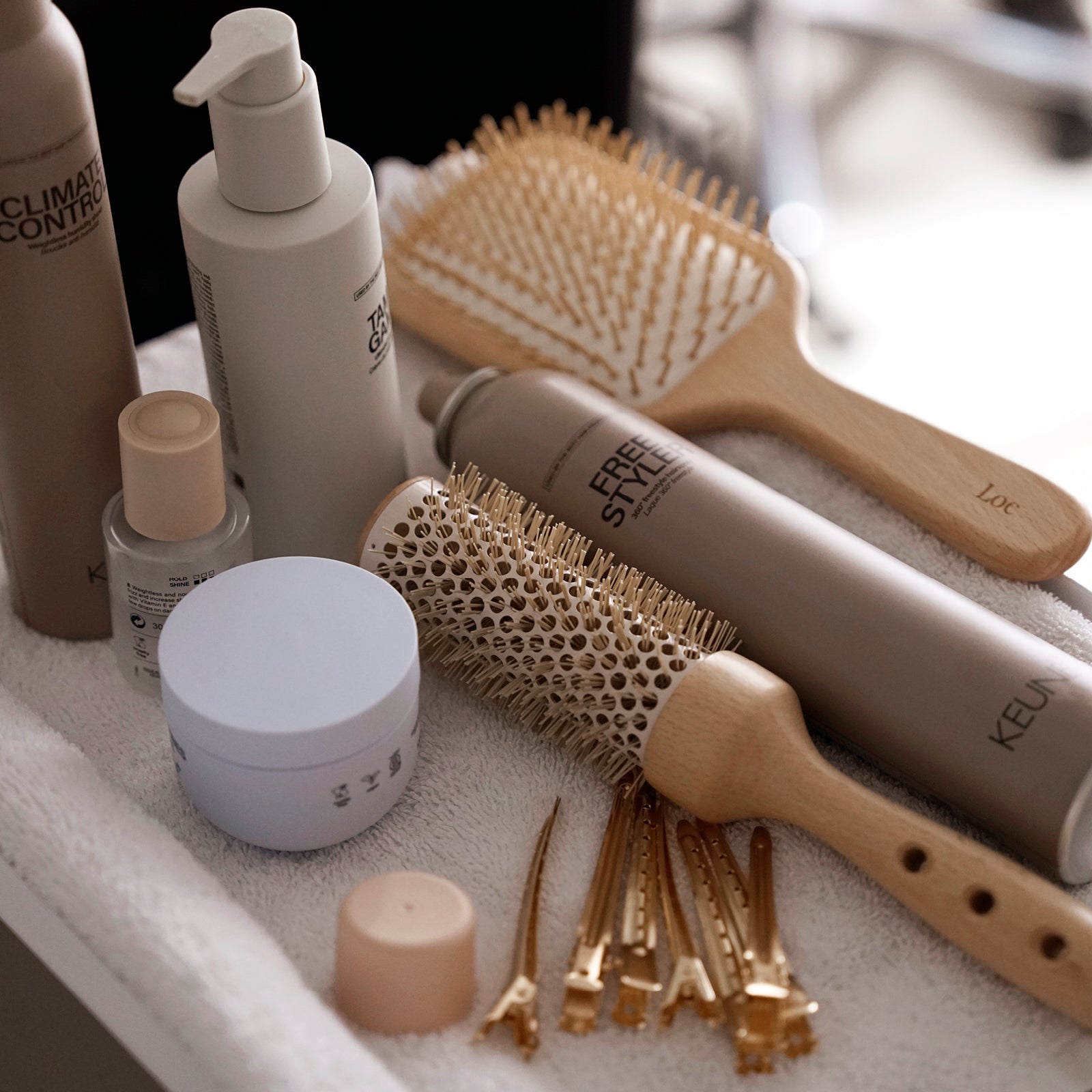 To keep your brush in its best condition, remove hair after each use and cleanse the bristles occasionally with lukewarm water and a mild shampoo like Keune's Color Brillianz Shampoo. Gently towel dry, laying it flat away from direct heat. When not in use, store in a cool, dry place to preserve the integrity of both bristles and handle.